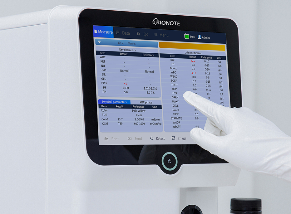 The AI-based automated urine analyzer provides results for three test categories: chemistry, sediment, and conductivity, offering comprehensive and reliable diagnostic insights.