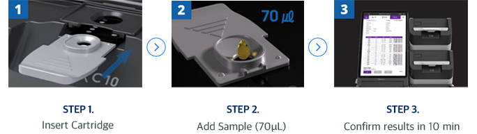 Get results in under 10 minutes using just 70 μL of sample.